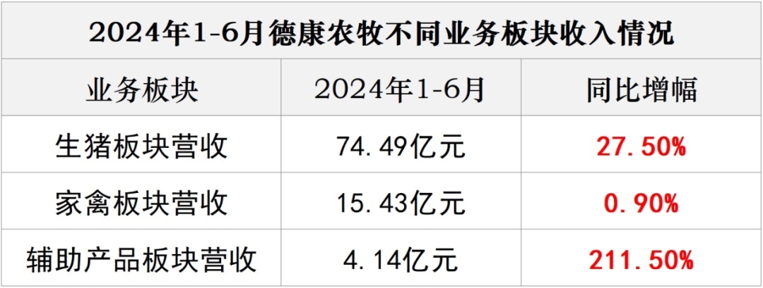2024年上半年,德康农牧营收94.07亿元,同比增长25.35%;生物资产公允价值调整前利润达3.63亿元,生物资产公允价值调整后利润达17.91亿元。该公司利润较上年同期大幅上涨,主要是因为国内猪价、黄羽肉鸡价格上涨,以及饲料原料价格下调,养殖成本降低。